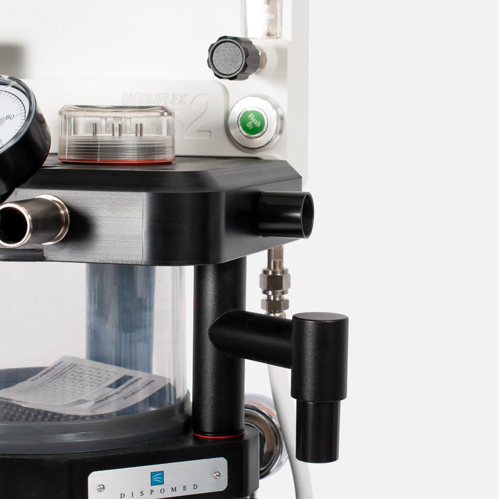 The flush valve on the Moduflex Access2 is recessed to prevent accidental activation and is calibrated at 50 lpm for safer usage, and to reduce the risk of high pressure in patients’ lungs.